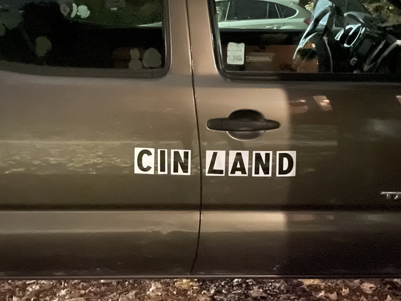 Landscape artist Eric Ellingsen used to mark his creative interventions into the built environment with a simple set of store bought vinyl stickers spelling out "CINLAND".